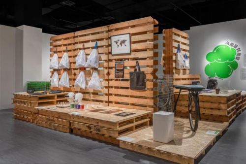有別于ㄧ般展覽使用大量一次性耗材,「2020亞洲社會設(shè)計展」全場使用回收自過往展覽或采買自鄰近二手市場的展覽用具,以及可回收再生材及可重組再利用的展示物件。展品介紹也不再使用展板,而是用回收紙箱、可重復(fù)使用與降解的幕布等方式呈現(xiàn),以社會設(shè)計的理念以實現(xiàn)可重復(fù)使用與零廢棄的目標(biāo)。